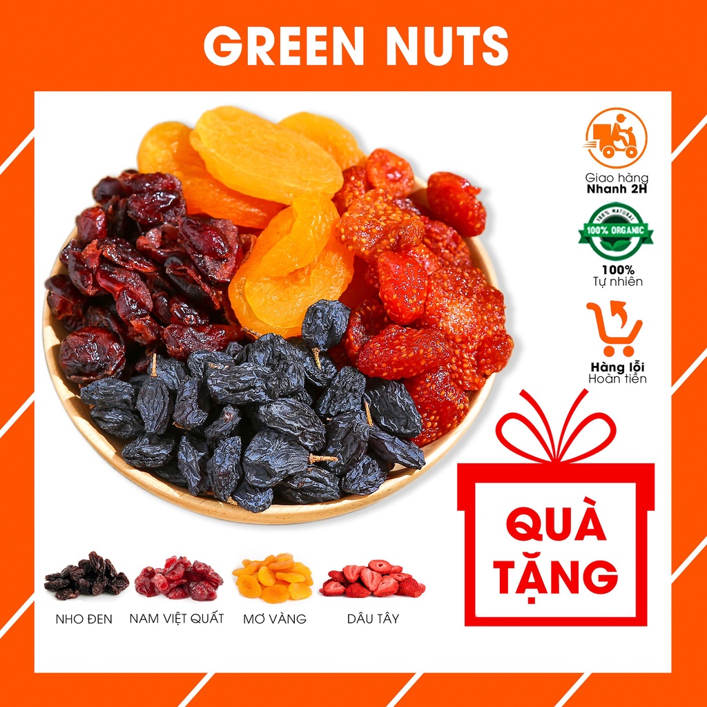 Freeship- TRÁI CÂY SẤY DẺO Green Nuts, Mix vị Mơ sấy dẻo, Dâu tây, Nho đen và Nam việt quất ĂN VẶT MẸ BẦU/ ĂN KIÊNG/ GIẢM CÂN mua tại đây